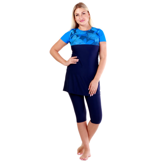 Blue Flora 2-Piece Modest Swimsuit (Short Sleeve)